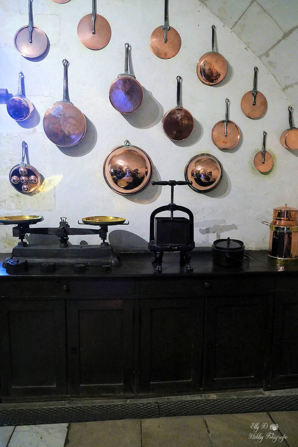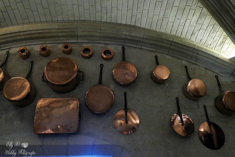 En dan gaan we naar beneden de keukens in die zijn gesitueerd in de brugpijlers ..want 1 keuken bestaat niet, je heb de vleeskeuken, broodbakkerij, kookgedeelte en nog een bakgedeelte met kruidenkeuken enz. En heel veel koperen pannen.