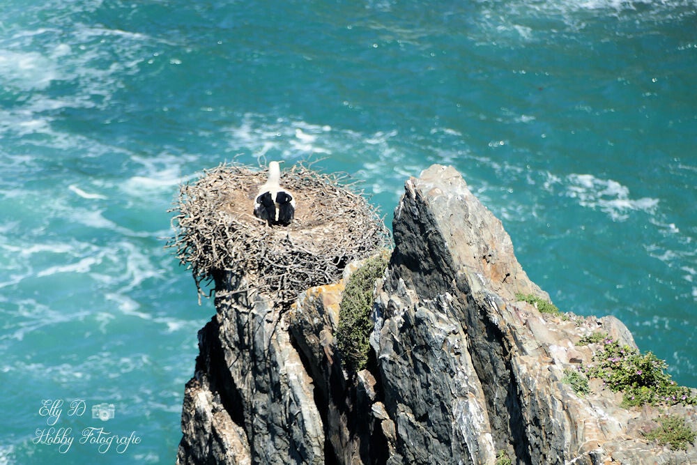 Hoog boven zee zitten ze op het nest...ze hebben wel mooi uitzicht.,