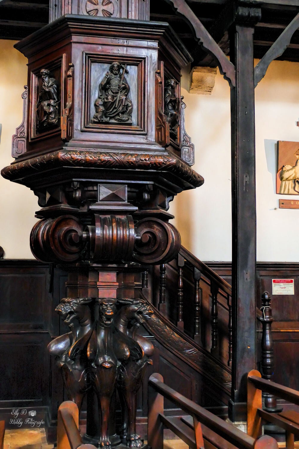 Wat detailfoto`s waaronder de preekstoel die zo groot is dat het niet op een foto past